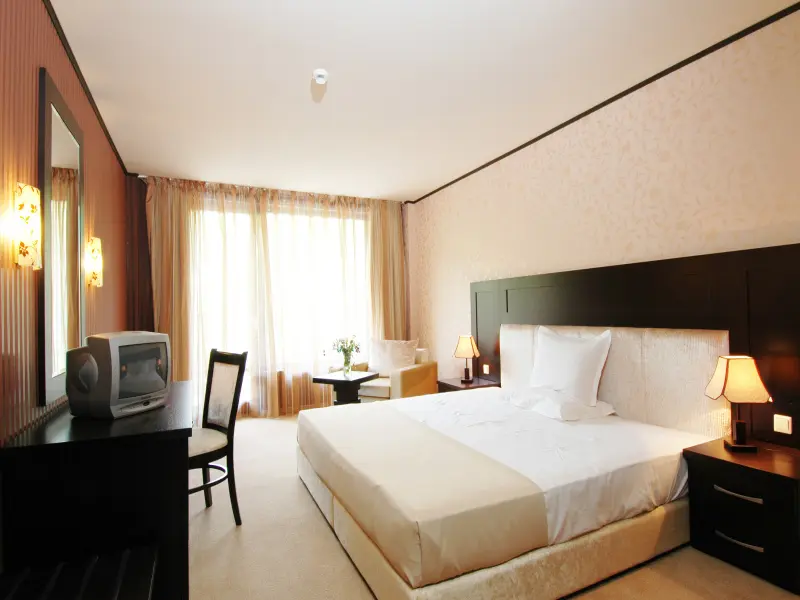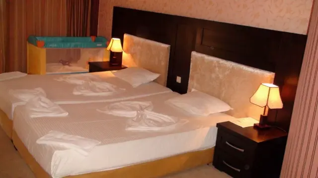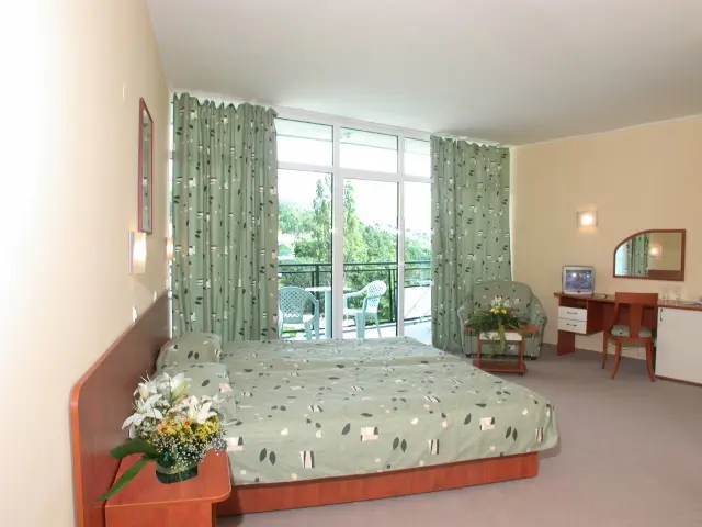 Hotel dysponuje 218 pokojami , są wsród nich pokoje dwuosobowe, pokoje rodzinne, apartamenty. Wszystkie klimatyzowane, wyposażone w dodatkowe łóżko (rozkładana sofa ), TV sat, telefon, mini bar, mała lodówka. Każdy posiada łazienkę (WC, prysznic, suszarka do włosów) oraz balkon z widokiem na park lub morze.
