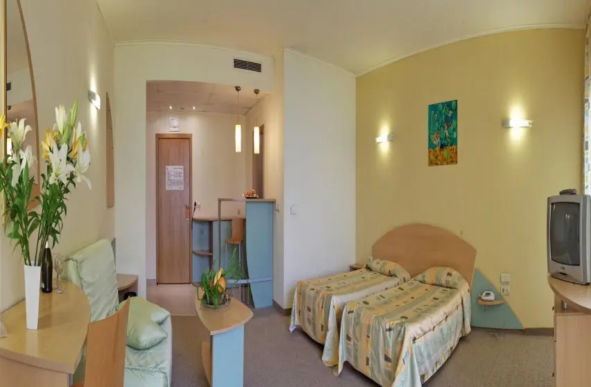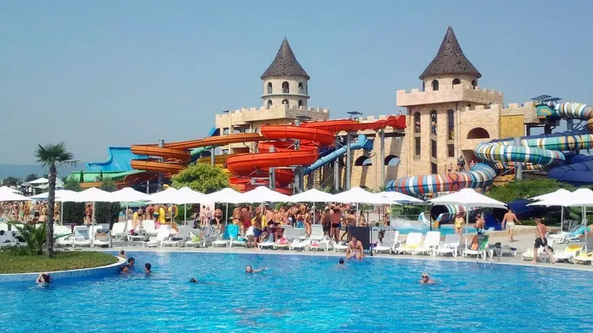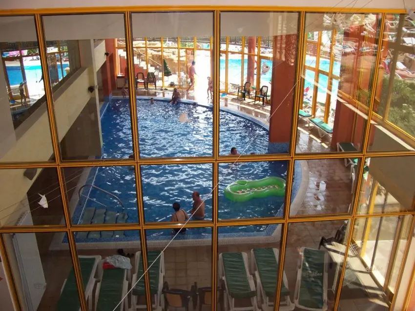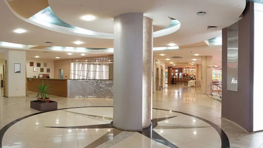 Hotel "Atlas" położony jest w centralnej części kurortu Złote Piaski. Jest to przestronny, doskonale wyposażony 6 - piętrowy obiekt, o wysokim standardzie , który powstał w 2003r. Oferuje pakiet all inclusive ultra plus. Posiada pokoje o jasnym wystroju, gdzie goście korzystają z prywatnego balkonu, mini baru, telefonu, telewizji kablowej. Są klimatyzowane i wygodne. Do dyspozycji hotelowych gości są : basen odkryty, basen kryty oraz dla dzieci z 2 zjeżdżalniami. Jest też plac zabaw dla dzieci, klub dla dzieci (3-12 lat), międzynarodowa animacja. Hotel oferuje swoim gościom wszystko co niezbędne do aktywnego wypoczynku, sportu oraz dobrego samopoczucia - centrum odnowy biologicznej, salę fitness oraz bogate zaplecze sportowe. Goście mogą korzystać z bezpłatnej sauny czy łażni parowej. Hotelowa restauracja jest przestronna i klimatyzowana, oferuje smaczną kuchnię w formie bufetu oraz wyborem dań z karty. Jest również bar w holu i przy basenie. W hotelu znajduje się gabinet lekarski czynny całą dobę, sklep z pamiątkami, kantor, kącik internetowy oraz sala konferencyjna. Recepcja czynna jest całą dobę. Do dyspozycji gości jest przechowalnia bagażu, faks/ksero, informacja turystyczna, wypożyczalnia samochodów oraz prywatny, płatny na miejscu parking. Wi-Fi dostępny w pomieszczeniach ogólnodostępnych i bezpłatny.